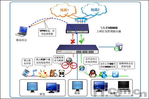 上班時(shí)間閑聊、游戲、團(tuán)購……,嚴(yán)重影響工作效率。飛魚星VE602具有一體化的上網(wǎng)行為管理體系,從網(wǎng)址分類管理、WEB安全管理、聊天軟件管控、P2P軟件管控、股票軟件管控、熱門游戲管控(例如QQ游戲、開心農(nóng)場(chǎng)、開心網(wǎng)等)、分組分時(shí)段管控等進(jìn)行全方位的上網(wǎng)行為管理。幫助中小企業(yè)用戶在沒有專業(yè)網(wǎng)管的情況下,也能用好網(wǎng)絡(luò),管好網(wǎng)絡(luò),全面提升員工的工作效率。