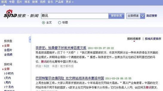 從去年將它的中國大陸服務撤離至香港以來,谷歌在中國搜索市場份額一路下滑,而谷歌在中國的主要競爭對手、中國第一大搜索服務供應商百度的市場份額一直在增長。新浪營銷中心副總經(jīng)理劉奇周一表示,新浪門戶網(wǎng)上的這一變化是因為新浪與谷歌合同到期。新浪網(wǎng)首頁上的搜索框現(xiàn)在使用自己的搜索技術(shù),搜索范圍按照新聞、博客和音樂等進行分類。