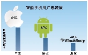 英國市場調查公司GfK Group昨日公布的一項調查顯示,在所有的智能手機用戶中,蘋果手機用戶的忠誠度最高,谷歌和黑莓次之。