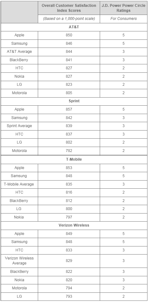 在所有美國(guó)運(yùn)營(yíng)商智能手機(jī)設(shè)備整體滿意度中,最高的是AT&T用戶(844),其次是Sprint(839)、T-Mobile (835)和Verizon無線(829)。整體智能手機(jī)用戶的滿意度為837。