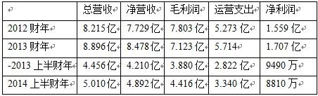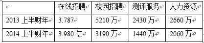 智聯(lián)招聘的財(cái)報(bào)數(shù)據(jù)以截至2012年6月30日的前一財(cái)年、截至2013年6月30日的上一財(cái)年、截至2013年12月31日的本財(cái)年上半財(cái)年為統(tǒng)計(jì)方式,以下簡稱2012財(cái)年、2013財(cái)年、2014上半財(cái)年,單位為元人民幣。
