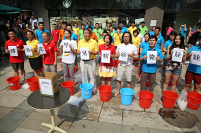 “冰桶挑戰(zhàn)”源自美國,全稱為“ALS冰桶挑戰(zhàn)賽”,ALS即肌萎縮側(cè)索硬化癥,又稱漸凍癥。挑戰(zhàn)旨在讓人們了解并體會“漸凍人”的感受,同時為其募款治病。它的規(guī)則是,挑戰(zhàn)者需將一桶盛有冰塊的冷水從頭頂澆下,上傳視頻后再提名三人接力,如果被點名的人沒有完成這一任務(wù),則要向ALS協(xié)會捐款100美元。