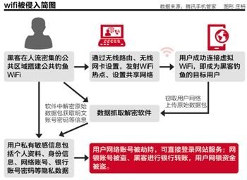 據(jù)了解,目前通過WiFi造成用戶安全問題的形式大致分為兩種,一種是央視曝光的WiFi連接問題,即不法分子直接鋪設(shè)WiFi熱點(diǎn),用戶連接之后,所有數(shù)據(jù)都會暴露在不法分子的系統(tǒng)中;第二種是用戶使用正規(guī)WiFi服務(wù)提供商的熱點(diǎn)而遭遇黑客攻擊。