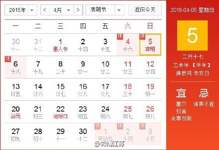 2015清明節(jié)放假安排